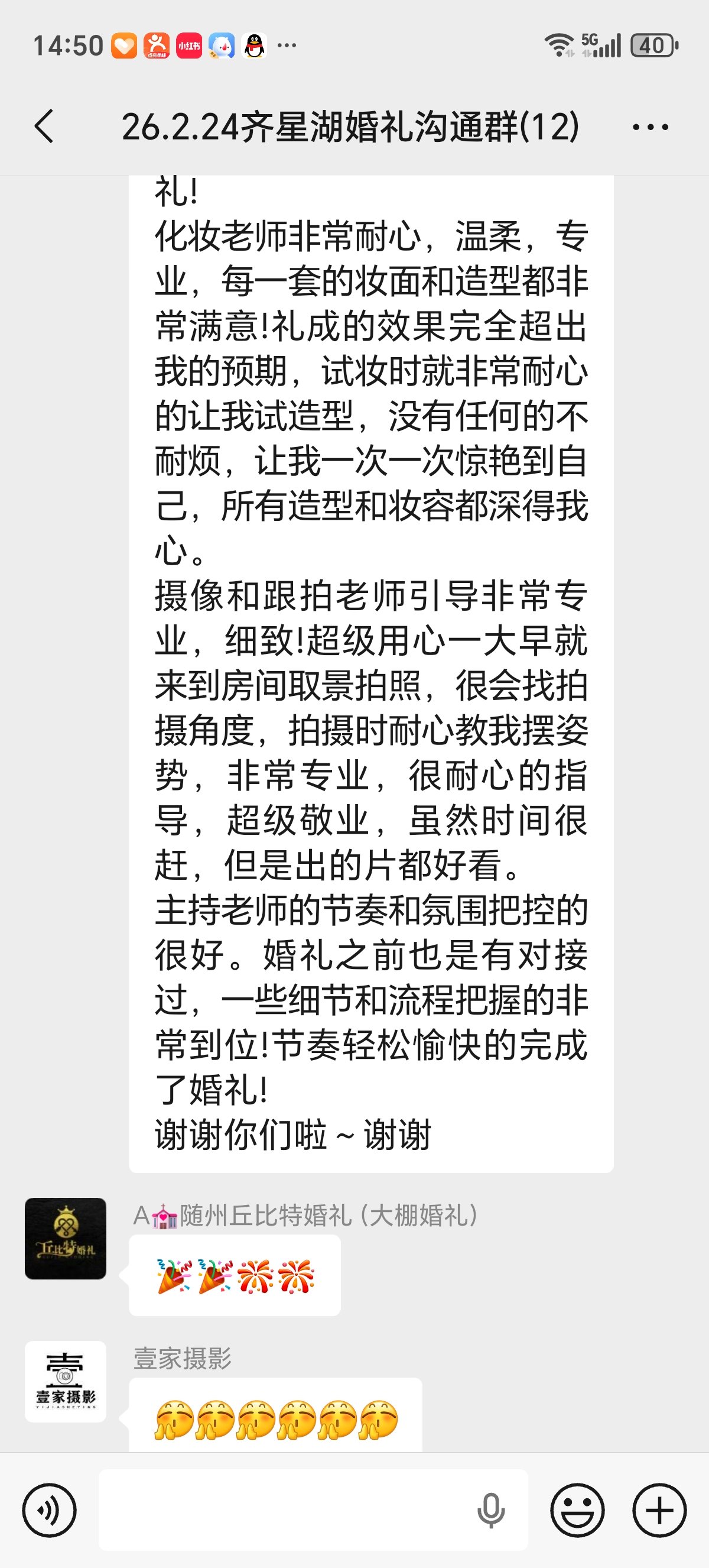 新人是通过网上咨询的,新娘是外地人,之前新郎的爸爸在当地已经找过婚庆了,新人还是觉得我们靠谱,通过了解后果断的就定了丘比特婚礼