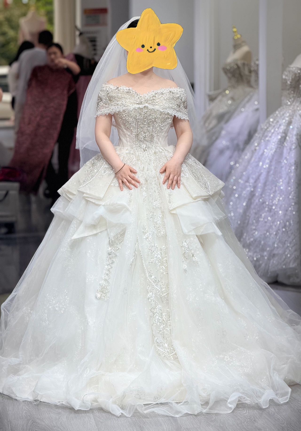 备婚选婚纱真的纠结了很久,最后选择这家店真的没失望。环境干净温馨,婚纱干净整洁,款式从简约到华丽应有尽有,试纱过程轻松又愉快,工作人员全程贴心陪伴,给了很多实用的搭配建议。穿上婚纱的那一刻,真的觉得所有等待都值得,是婚礼最美好的开始~