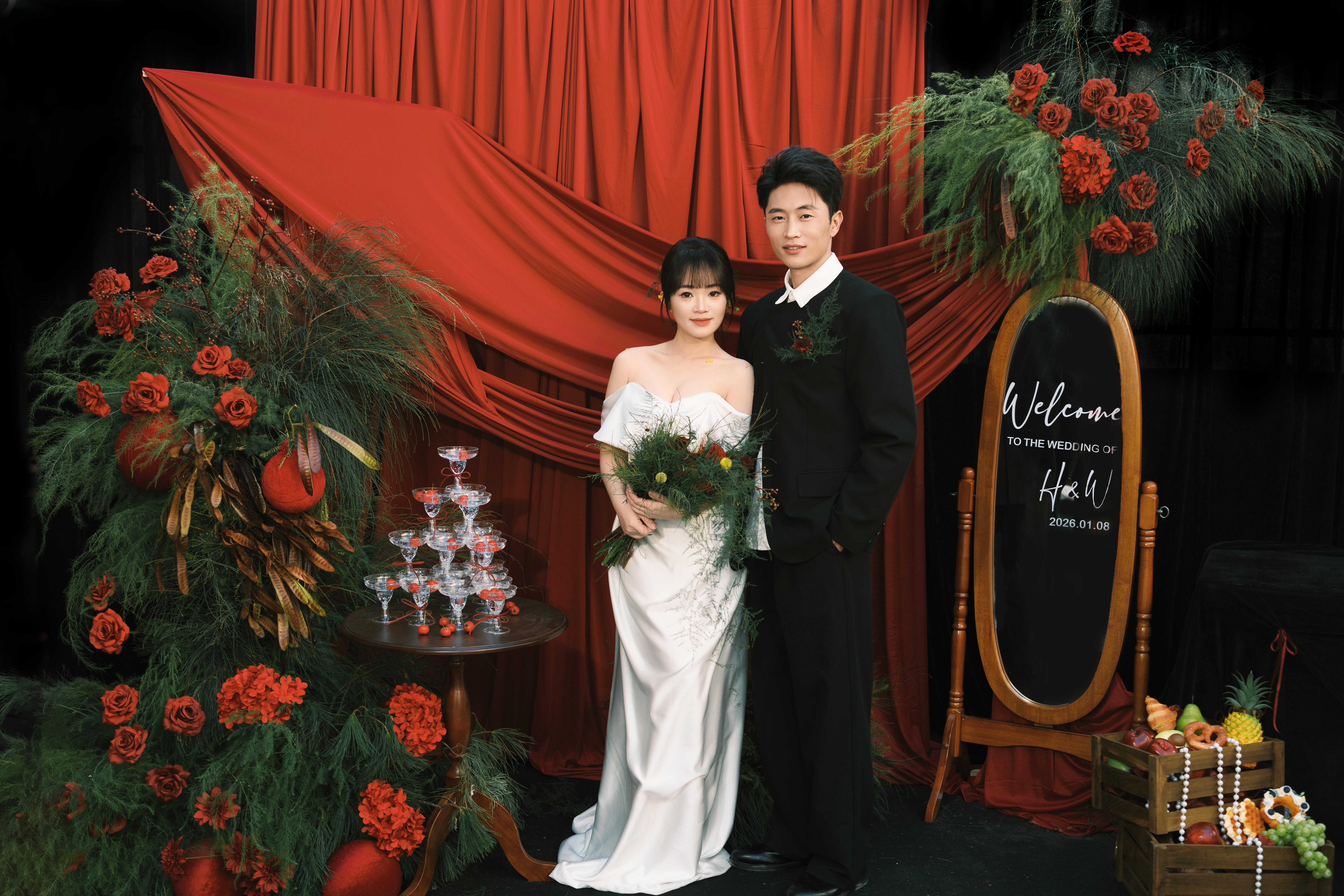 【红妆】自家庭院户外红色系婚礼