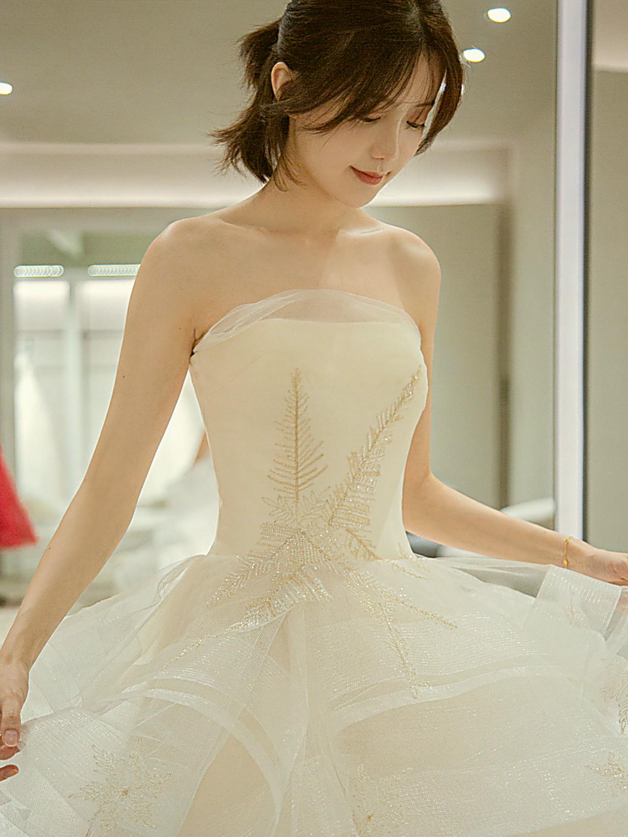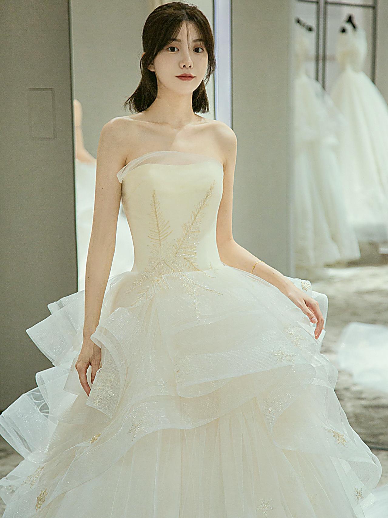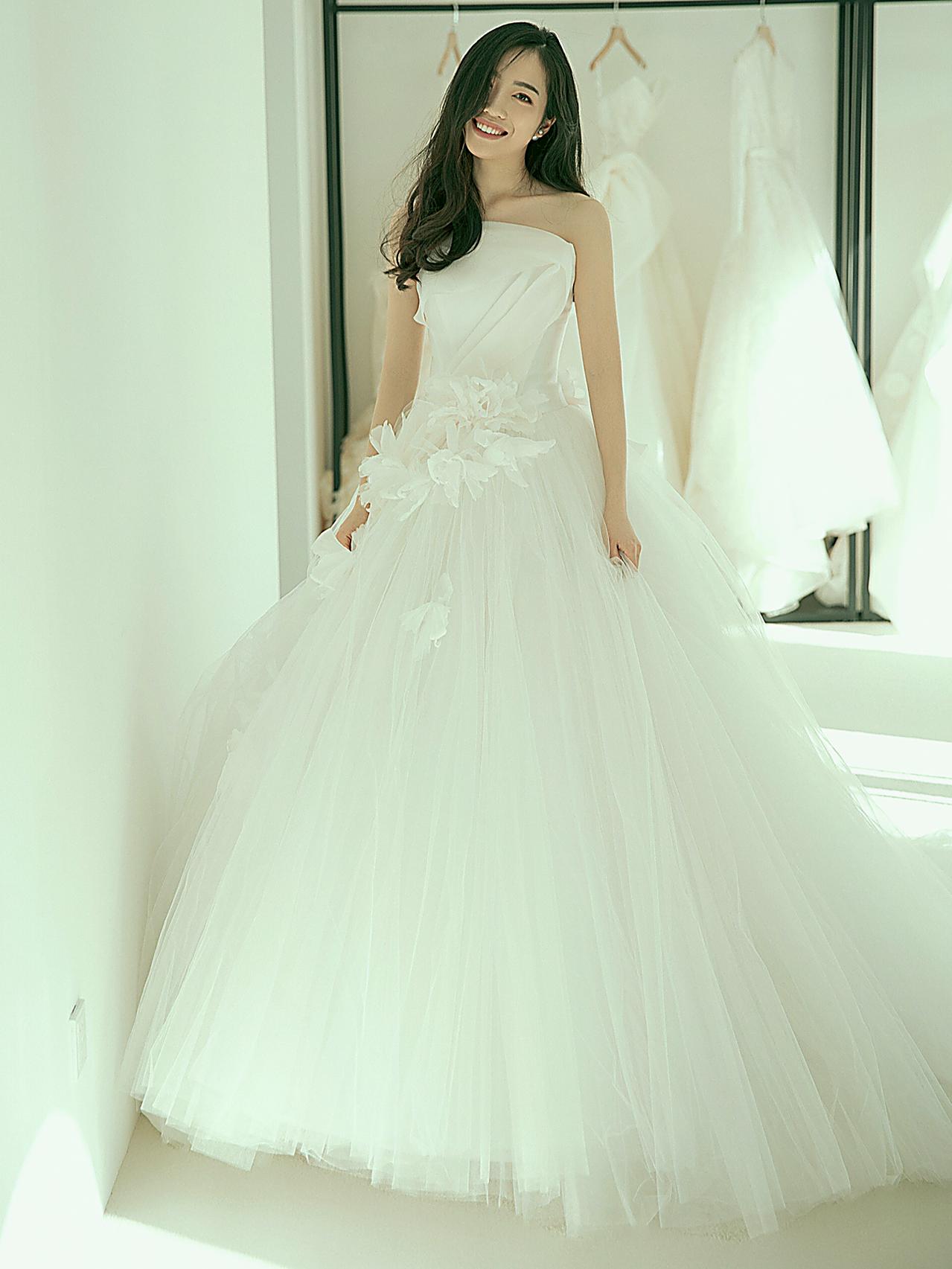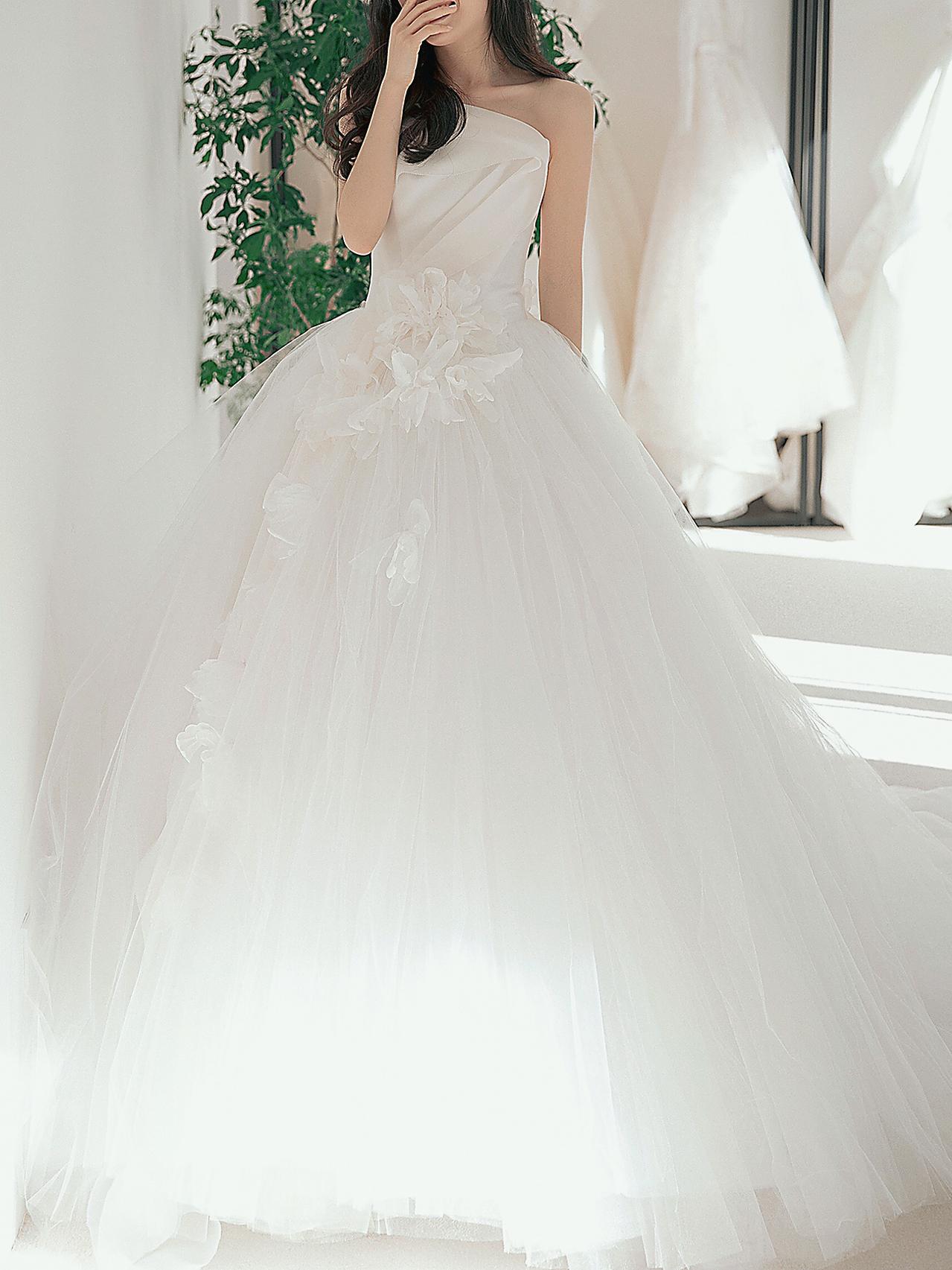 【温柔贵气】缎面抹胸齐地婚纱