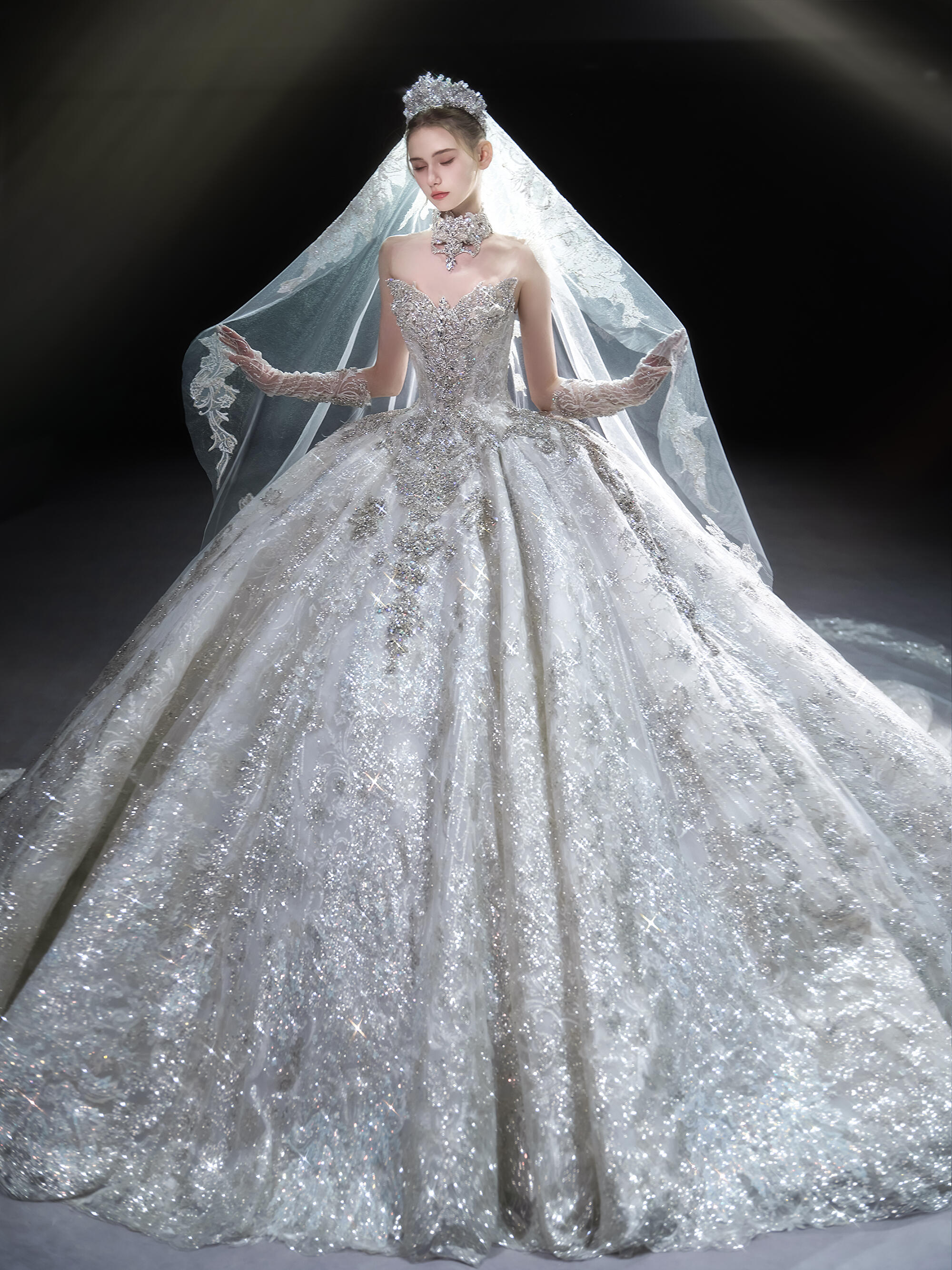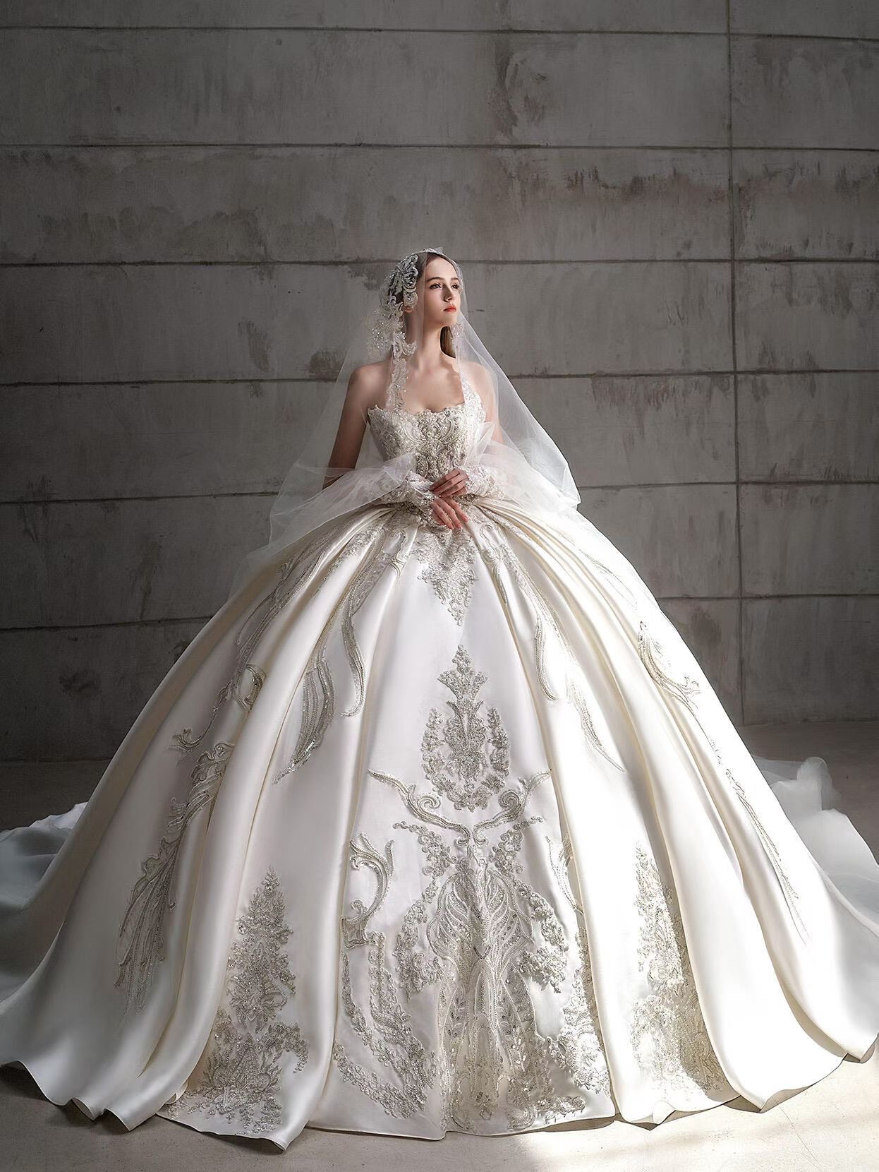 【余礼婚纱】重手工长袖婚纱女王范