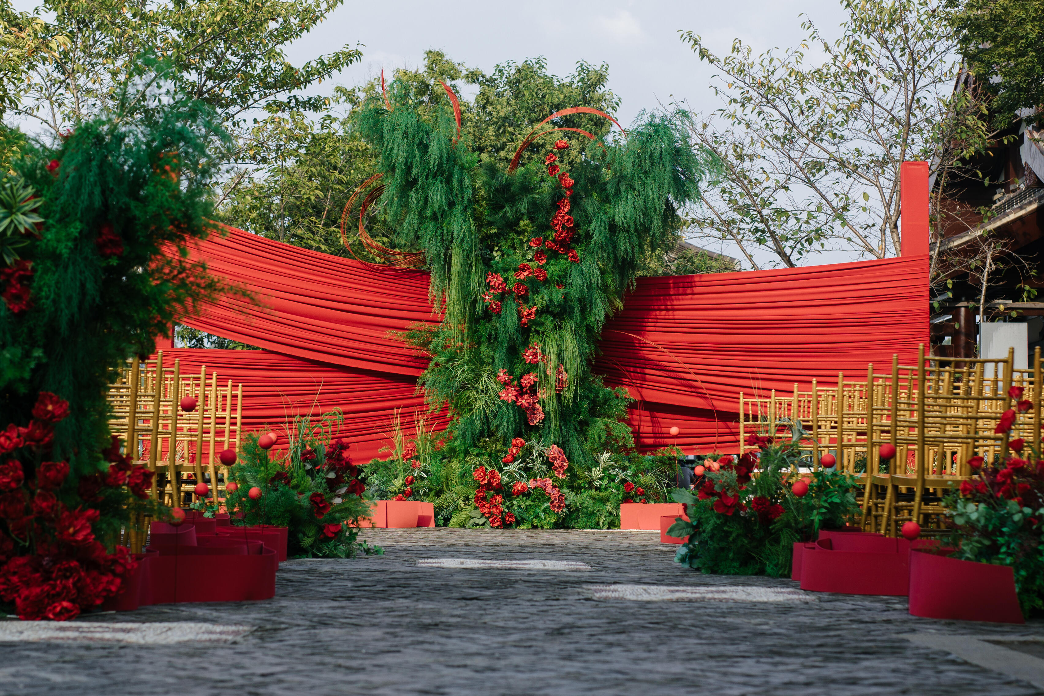 农村红色户外森系婚礼