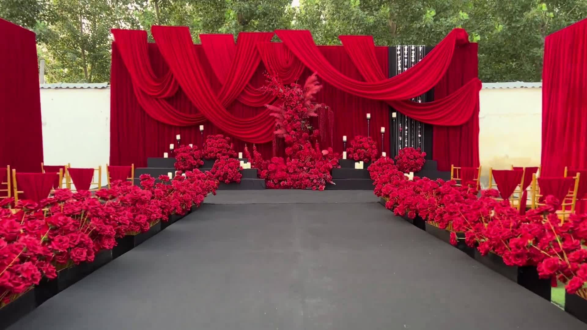红幔承囍,花簇盈庭
